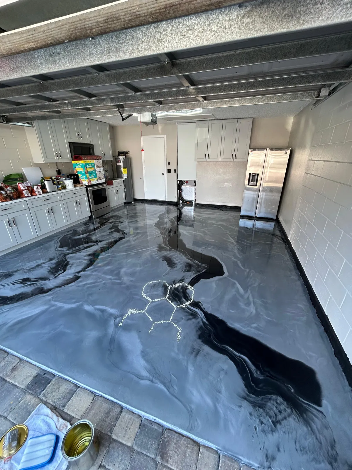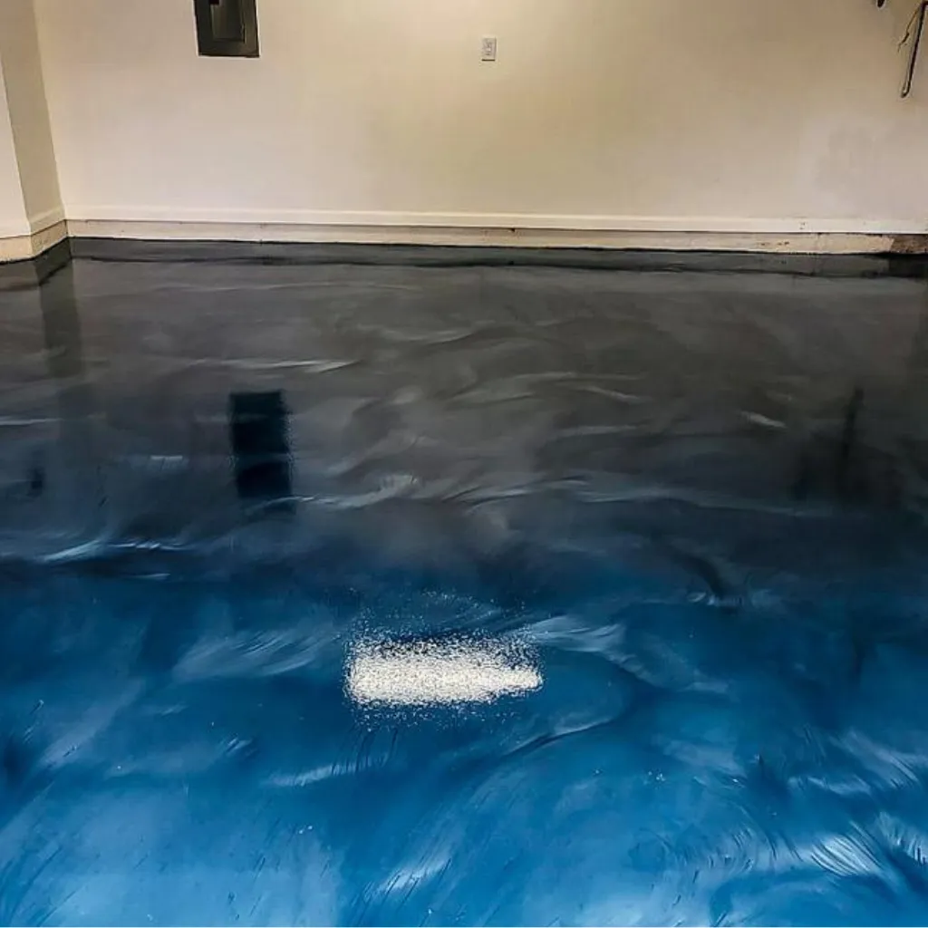 Choose metallic marble epoxy for a floor that combines art and strength. With its unique 3D patterns and glossy finish, this coating adds elegance to any space while delivering the durability and easy maintenance your home